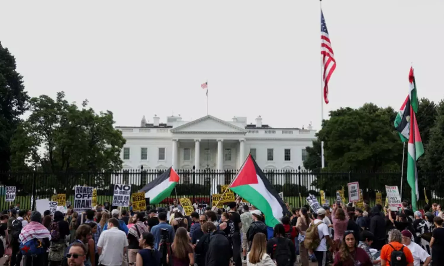 ഇസ്രായേൽ-ഇറാൻ സംഘർഷം; അമേരിക്കൻ പങ്കാളിത്തത്തിൽ വൈറ്റ് ഹൗസിന് മുന്നിൽ പ്രതിഷേധം