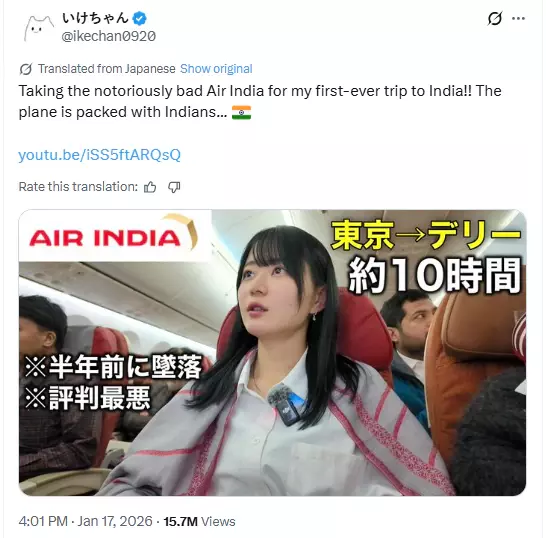 'കുപ്രസിദ്ധമായ എയര് ഇന്ത്യക്കൊപ്പം ആദ്യമായി ഇന്ത്യയിലേക്ക്'; അധിക്ഷേപവുമായി ജാപ്പനീസ് യൂട്യൂബര്