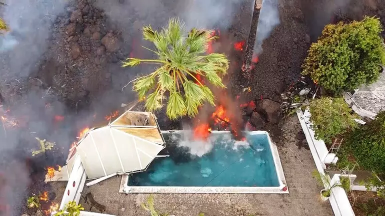 നീന്തല്ക്കുളത്തിലേക്ക് ഒഴുകിയെത്തുന്ന ലാവ;വൈറലായി വീഡിയോ
