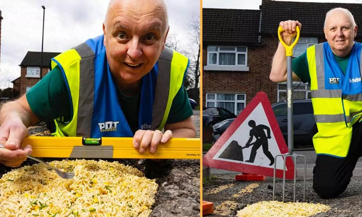 റോഡിലെ കുഴികളിൽ ന്യൂഡിൽസ് പാകം ചെയ്ത് പ്രതിഷേധം; വേറിട്ട സമരമാർഗവുമായി യു.കെ സ്വദേശി