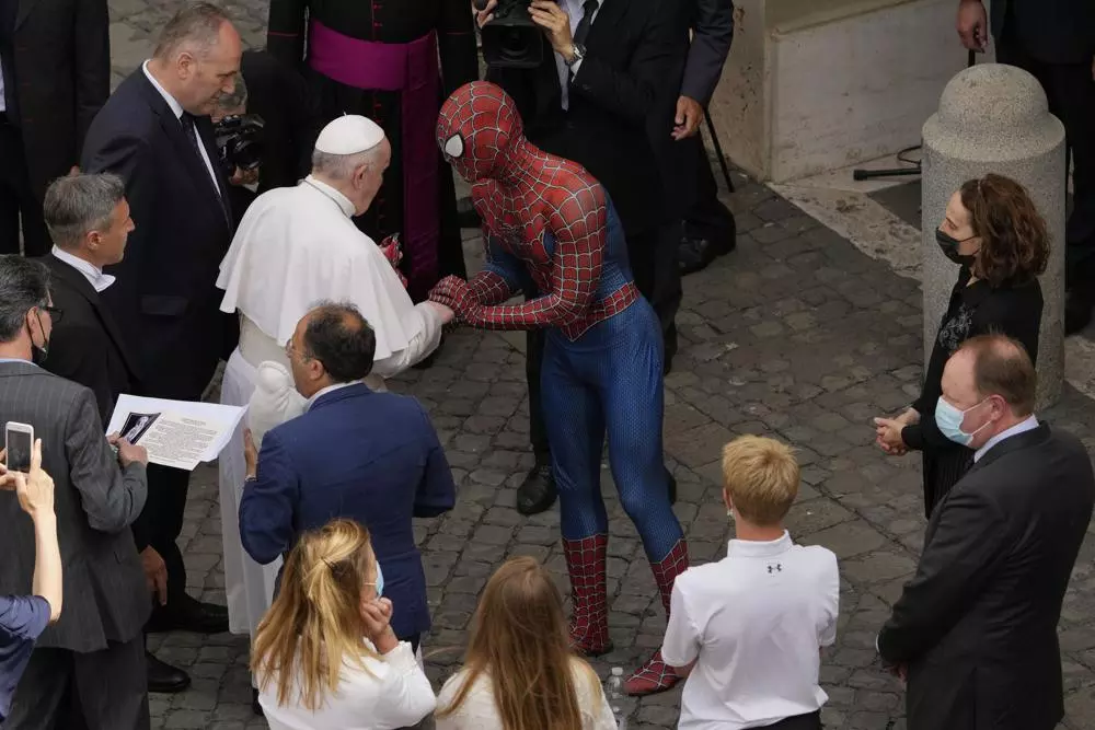 The Pope met with the superhero Spiderman at the end of his weekly general audience.
