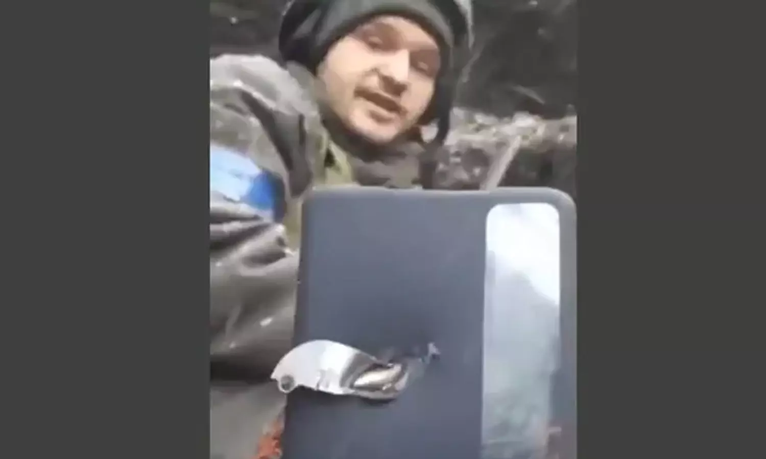 നെഞ്ചിന് നേരെ ചീറിപാഞ്ഞ് വന്ന വെടിയുണ്ടയെ തടഞ്ഞത് സ്മാർട് ഫോൺ; യുക്രൈൻ യുദ്ധഭൂമിയിലെ കാഴ്ച -വീഡിയോ