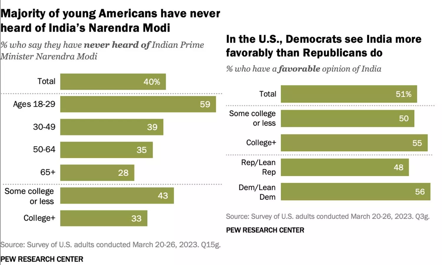 Summary: Narendra Modi is unfamiliar among young and elderly Americans, as 40% of them have never heard of the Indian Prime Minister