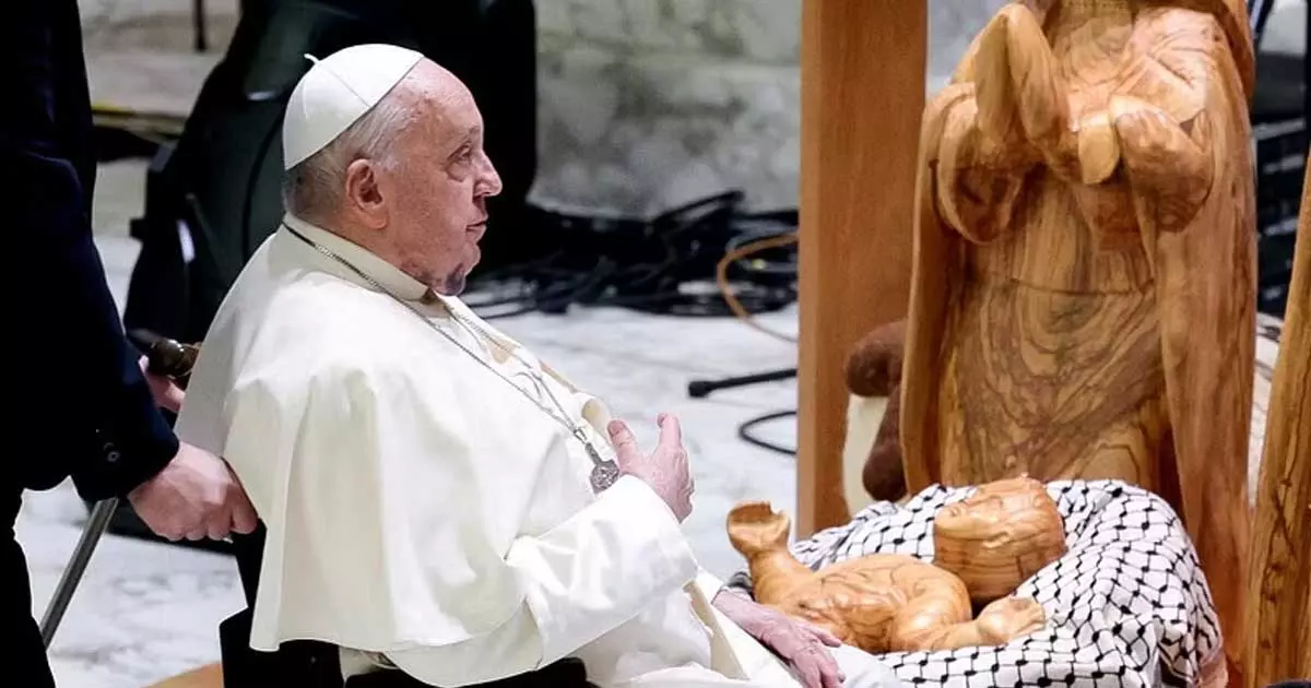 ‘പുൽക്കൂട്ടിലെ കഫിയയിൽ ഉണ്ണി യേശു’; ഫലസ്തീനിൽ സമാധാനത്തിന് ആഹ്വാനം ചെയ്ത് ഫ്രാൻസിസ് മാർപ്പാപ്പ