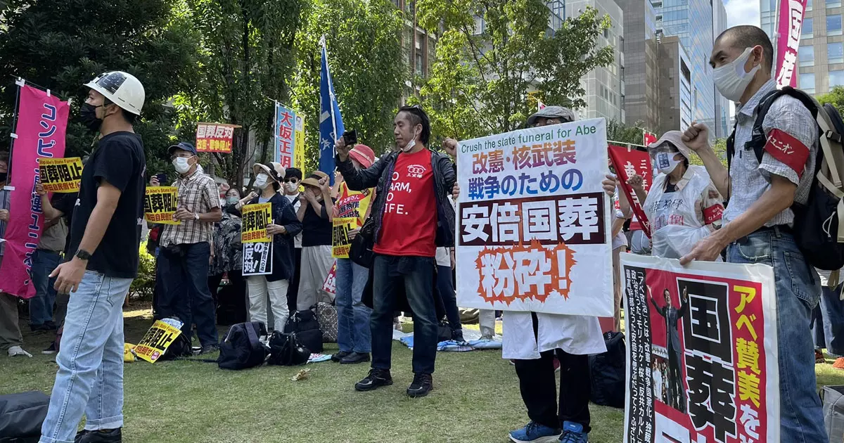 വിവാദ ആത്മീയ പ്രസ്ഥാനമായ ദക്ഷിണ കൊറിയൻ യൂണിഫിക്കേഷൻ ചർച്ചുമായി ആബെക്കുണ്ടായിരുന്ന ബന്ധവും പ്രതിഷേധത്തിന് കാരണമായി. നിരവധി ജപ്പാൻകാരുടെ കോടിക്കണക്കിന് പണം ഈ പ്രസ്ഥാനം തട്ടിയെടുത്തെന്നാണ് ആരോപണം. ആബെയുടെ ഘാതകൻ തെത്സുയ യമാഗാമിയുടെ അമ്മ ഈ ഗ്രൂപ്പിന് ഏകദേശം 100 ദശലക്ഷം യെൻ സംഭാവന നൽകിയിരുന്നു. ഇത് അദ്ദേഹത്തിന്റെ കുടുംബത്തെ പാപ്പരാക്കിയതിലുള്ള രോഷമാണ് ദക്ഷിണ കൊറിയൻ യൂണിഫിക്കേഷൻ ചർച്ചുമായി അടുപ്പമുള്ള ഷിൻസോ ആബെയെ കൊല്ലാൻ പ്രതിയെ പ്രേരിപ്പിച്ചത്. കഴിഞ്ഞ ജൂലൈ 8 നാണ് ഷിൻസോ ആബെ കൊല്ലപ്പെടുന്നത്. ശവസംസ്കാരച്ചടങ്ങുകൾക്കായി വൻഒരുക്കങ്ങളാണ് ജപ്പാൻ ഭരണകൂടം ഒരുക്കിയത്. യുഎസ് വൈസ് പ്രസിഡന്റ് കമല ഹാരിസ്, ഇന്ത്യൻ പ്രധാനമന്ത്രി നരേന്ദ്രമോദി തുടങ്ങി നൂറിലധികം രാജ്യങ്ങളിൽ നിന്നുള്ള നേതാക്കളാണ് ചടങ്ങിനെത്തിയത്.