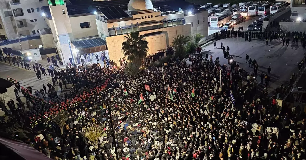 Thousands protest in Amman, the capital of Jordan, demanding the closure of the Israeli embassy.