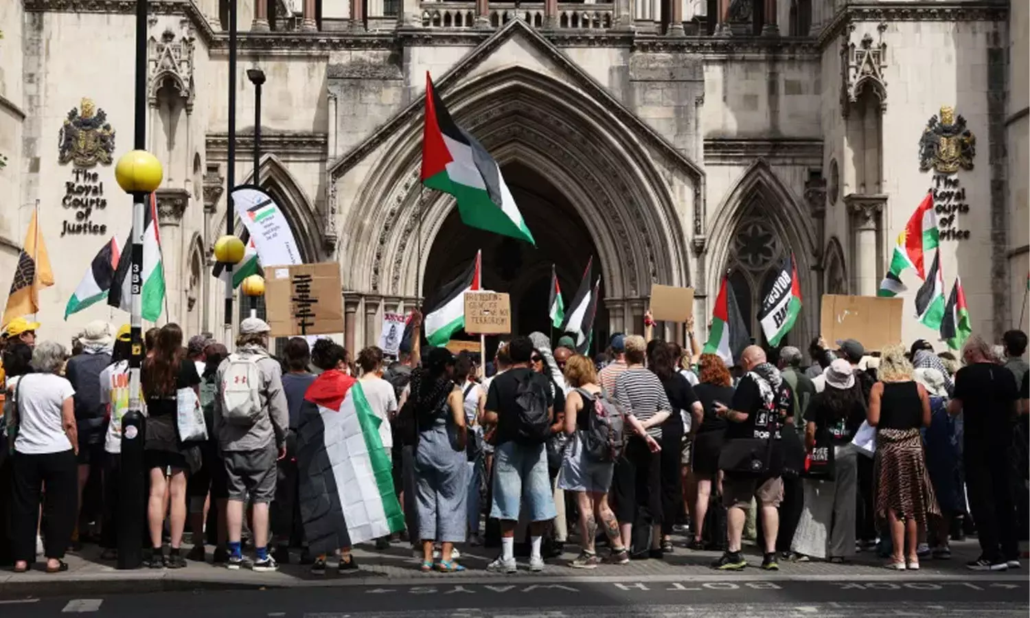 ലണ്ടൻ: ഭീകരവാദ നിയമനിർമാണത്തിന് കീഴിൽ ആക്ടിവിസ്റ്റ് ഗ്രൂപ്പായ ഫലസ്തീൻ ആക്ഷനെ നിരോധിക്കാനുള്ള യുകെ സർക്കാരിന്റെ പദ്ധതിക്കെതിരെ വെള്ളിയാഴ്ച റോയൽ കോർട്ട്സ് ഓഫ് ജസ്റ്റിസിന് പുറത്ത് നൂറുകണക്കിന് പ്രകടനക്കാർ ഒത്തുകൂടി. നിരോധന ഉത്തരവ് പ്രാബല്യത്തിൽ വരുന്നത് തടയാനുള്ള നിയമപരമായ വെല്ലുവിളി പരിഗണിക്കുന്ന ഹൈക്കോടതി വിധിക്ക് മുന്നോടിയായാണ് പ്രതിഷേധം.
