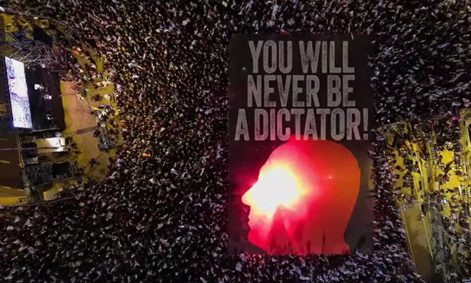 തെൽഅവീവിനെ പിടിച്ചുകുലുക്കിയ പ്രക്ഷോഭമാണ് ഇന്നലെ നടന്നത്. 1,10,000 പേർ പ്രകടനത്തിൽ പങ്കെടുത്തെന്ന് ഇസ്രായേൽ മാധ്യമമായ 'ചാനൽ 12' റിപ്പോർട്ട് ചെയ്യുന്നു. മറ്റ് ഇസ്രായേൽ നഗരങ്ങളിലും പ്രതിഷേധം അരങ്ങേറിയിരുന്നു. ഇസ്രായേൽ പതാകകൾ ഉയർത്തിയാണ് ജനങ്ങൾ തെരുവിലിറങ്ങിയത്.