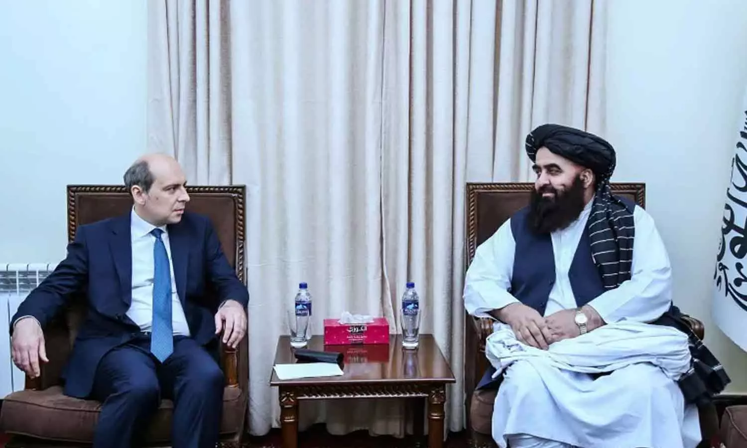 റഷ്യൻ അംബാസഡർ ദിമിത്രി ഷിർനോവും അഫ്ഗാനിസ്താന് വിദേശകാര്യ മന്ത്രി ആമിര് ഖാൻ മുത്തഖിയും