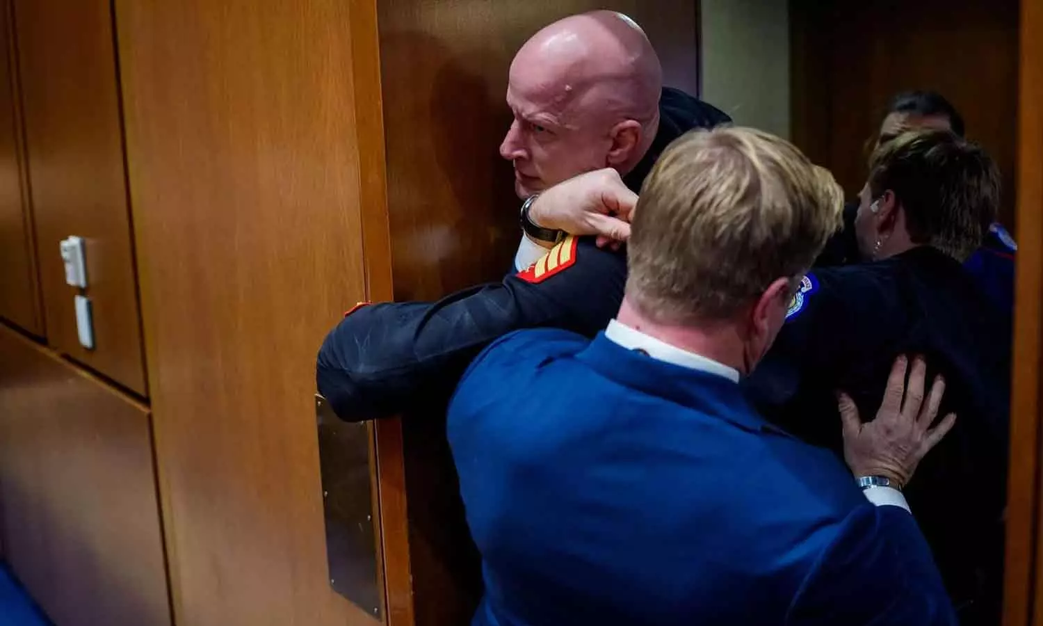 മക്ഗിന്നിസിനെ മുറിയിൽ നിന്ന് പുറത്താക്കാൻ മൊണ്ടാനയിൽ നിന്നുള്ള സെനറ്ററും യുഎസ് വെറ്ററനുമായ ടിം ഷീഹി, സുരക്ഷാ ഉദ്യോഗസ്ഥരെ സഹായിക്കുന്നത് വീഡിയോ ക്ലിപ്പില് കാണാം. എന്നാല് സാഹചര്യം ശാന്തമാക്കുവാന് വേണ്ടിയാണ് താന് ഇടപെട്ടതെന്ന് അദ്ദേഹം പിന്നീട് പറഞ്ഞു.