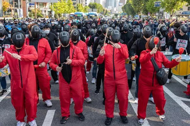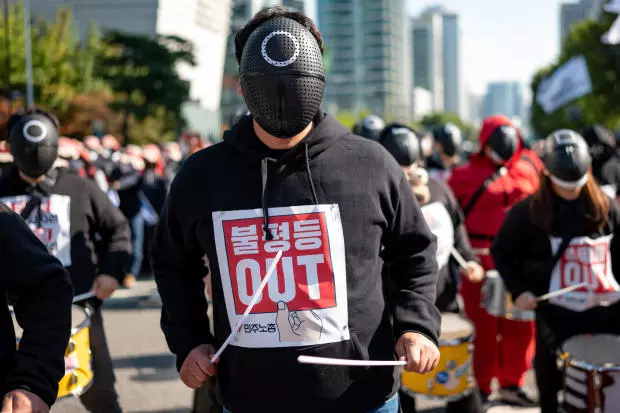 'സ്ക്വിഡ് ഗെയിം' കഥാപാത്രങ്ങളായി തെരുവില് ആയിരങ്ങള്; ദക്ഷിണ കൊറിയയില് തൊഴിലാളി പ്രക്ഷോഭം