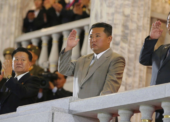 |ഉത്തരകൊറിയയുടെ 73ാം സ്ഥാപക വാര്ഷികത്തോടനുബന്ധിച്ച് ഇന്നലെ അര്ധരാത്രി നടത്തിയ സൈനിക പരേഡില് അഭിവാദ്യമര്പ്പിക്കാനെത്തിയതായിരുന്നു കിം