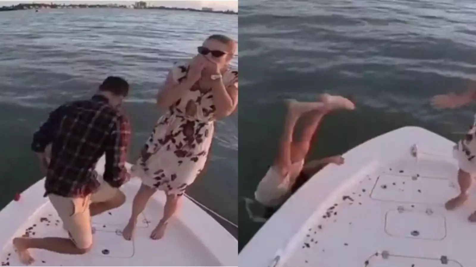 കടലിൽ ടൈറ്റാനിക് സ്റ്റൈലിൽ പ്രൊപ്പോസ് ചെയ്യാനെത്തി, 'ജാക്ക്' ദേ വെള്ളത്തിൽ; വീഡിയോ
