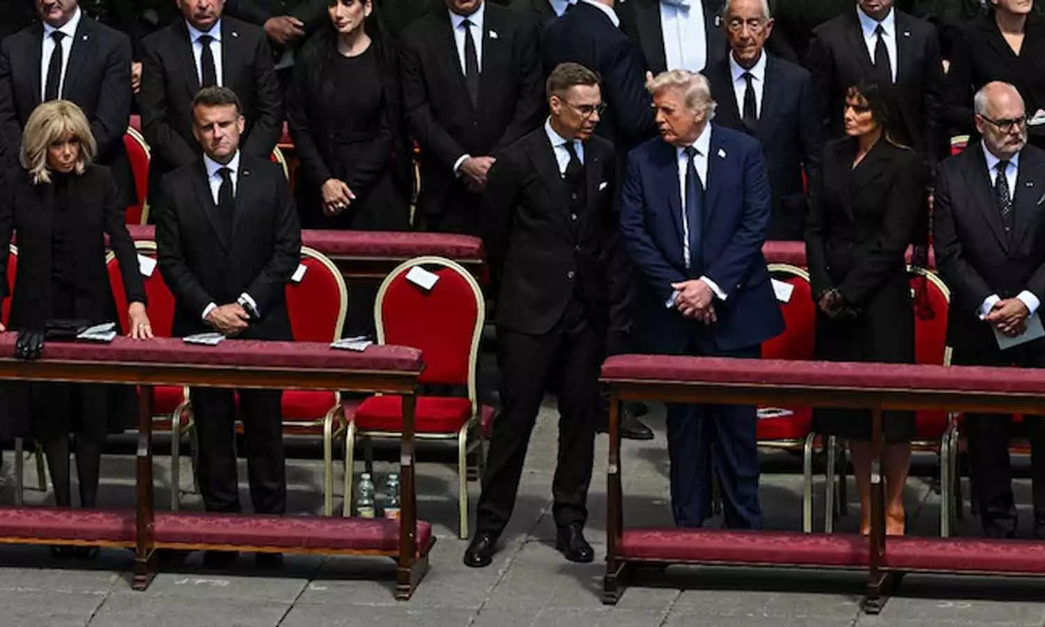 ഫ്രഞ്ച് പ്രസിഡന്റ് ഇമ്മാനുവൽ മാക്രോൺ, ബ്രിട്ടീഷ് പ്രധാനമന്ത്രി കെയർ സ്റ്റാർമർ, അർജന്റീന പ്രസിഡന്റ് ജാവിയർ മിലി, ഇറ്റാലിയൻ പ്രധാനമന്ത്രി ജോർജിയ മെലോണി എന്നിവരുൾപ്പെടെയുള്ള ലോക നേതാക്കൾ സെന്റ് പീറ്റേഴ്സ് സ്ക്വയറിൽ ഫ്രാൻസിസ് മാർപാപ്പയ്ക്ക് അന്തിമോപചാരം അർപ്പിക്കാൻ കറുത്ത വസ്ത്രം അണിഞ്ഞ് എത്തിയിരുന്നു. ട്രംപിന്റെ പങ്കാളി മെലാനിയ ട്രംപും കറുത്ത വസ്ത്രങ്ങൾ അണിഞ്ഞാണ് ചടങ്ങിനെത്തിയത്.