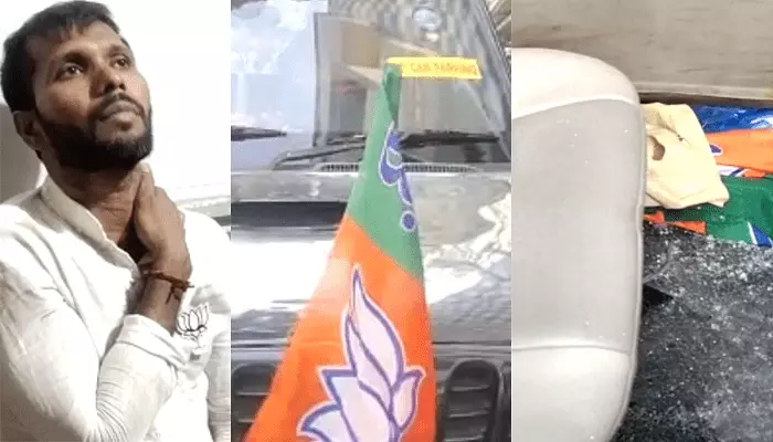 സംഭവത്തിന്റെ ചിത്രങ്ങള് എ.എന്.ഐ ട്വീറ്റ് ചെയ്തു. കാറിന്റെ ചില്ലുകള് തകര്ന്നു. കാര് തകര്ക്കാന് ഉപയോഗിച്ചെന്ന് കരുതുന്ന കല്ലുകളും ചിത്രങ്ങളില് കാണാം. ദിന്ഡയുടെ കഴുത്തിനും തോളിനുമാണ് പരിക്കേറ്റത്. അതേസമയം അക്രമത്തില് തെരഞ്ഞെടുപ്പ് കമ്മീഷന് വിശദീകരണം ആവശ്യപ്പെട്ടിട്ടുണ്ട്. തൃണമൂല് കോണ്ഗ്രസാണ് അക്രമണത്തിന് പിന്നിലെന്ന് ബി.ജെ.പി നേതാക്കള് ആരോപിച്ചു. എന്നാല് ആരോപണം തള്ളിയ തൃണമൂല് കോണ്ഗ്രസ് നേതാക്കള്, സംസ്ഥാന ബി.ജെ.പിയിലെ അതൃപ്തിയാണ് സംഘര്ഷത്തിന് പിന്നിലെന്ന് പറയുന്നു.