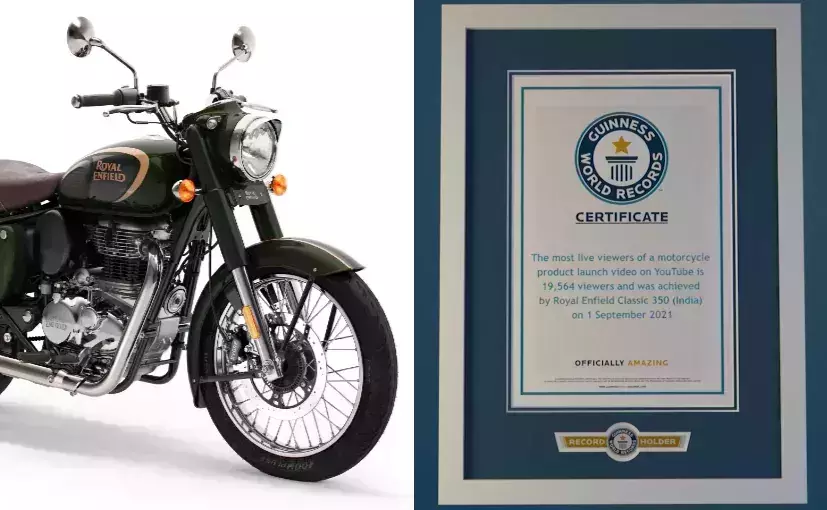 പുതിയ ക്ലാസിക് 350 ന്റെ ലോഞ്ചിങ് ചടങ്ങ് യൂട്യൂബില് 19,564 പേർ തത്സമയം കണ്ടതാണ് റെക്കോര്ഡിന് അര്ഹമാക്കിയത്.