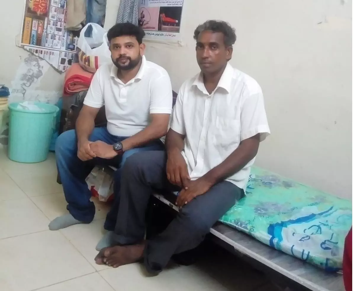 ജലീൽ സാമൂഹിക പ്രവർത്തകൻ ഷിജുവിനോടൊപ്പം താൽക്കാലിക താമസ സ്ഥലത്ത്