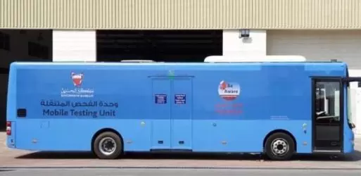 ബഹ്റൈനിൽ പൊതുഗതാഗതത്തിനുപയോഗിച്ചിരുന്ന ചുവപ്പ് നിറത്തിലുള്ള ട്രാൻസ്പോർട്ട് ബസുകളിൽ ചിലതാണ് കോവിഡ് പരിശോധനക്കുള്ള മൊബൈൽ യൂണിറ്റുകളായി മാറിയത്. നീല നിറത്തിലേക്ക് മാറിയ ഇത്തരം വാഹനങ്ങൾ തെരുവുകളിലും പാതയോരങ്ങളിലും പാർക്ക് ചെയ്ത് കൂടുതൽ പേർക്ക് പരിശോധനാ സംവിധാനമൊരുക്കുന്നു . സൗകര്യപ്രദമായി രോഗ നിർണയം നടത്താനുള്ള ഈ അവസരം പ്രവാസികളടക്കം നിരവധി പേർ ഉപയോഗിക്കുന്നുണ്ട്.
