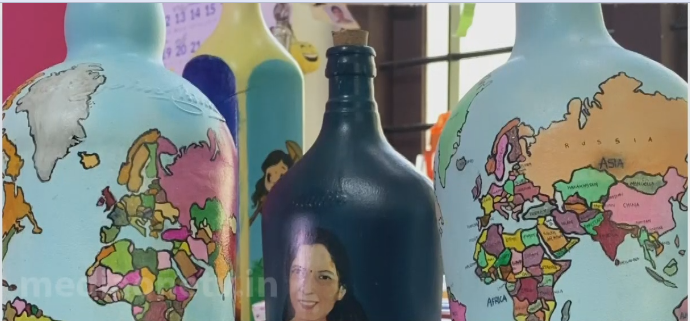 കുപ്പിയിൽ ലോക രാജ്യങ്ങളുടെ ഭൂപടം വരച്ച് ഇന്ത്യ ബുക്ക് ഓഫ് റെക്കോർഡിൽ ഇടം പിടിച്ചിരിക്കുകയാണ് പൊന്നാനി സ്വദേശി കൃഷ്ണ. ലോക്ഡൗൺ സമയത്ത് തുടങ്ങിയ കുപ്പിവര ഹിറ്റായതോടെ ഇന്നിപ്പോൾ ആവശ്യക്കാരും ഏറെയാണ്..