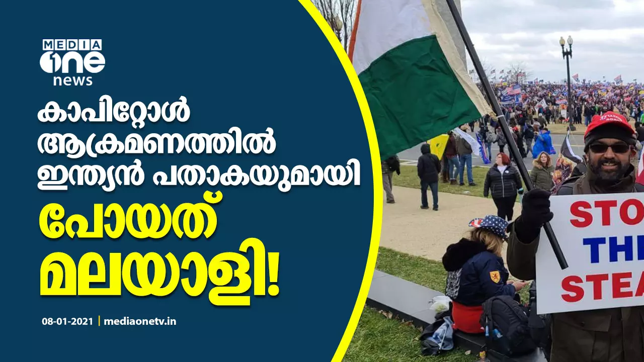 കാപിറ്റോള് ആക്രമണത്തില് ഇന്ത്യന് പതാകയുമായി പോയത് മലയാളി!