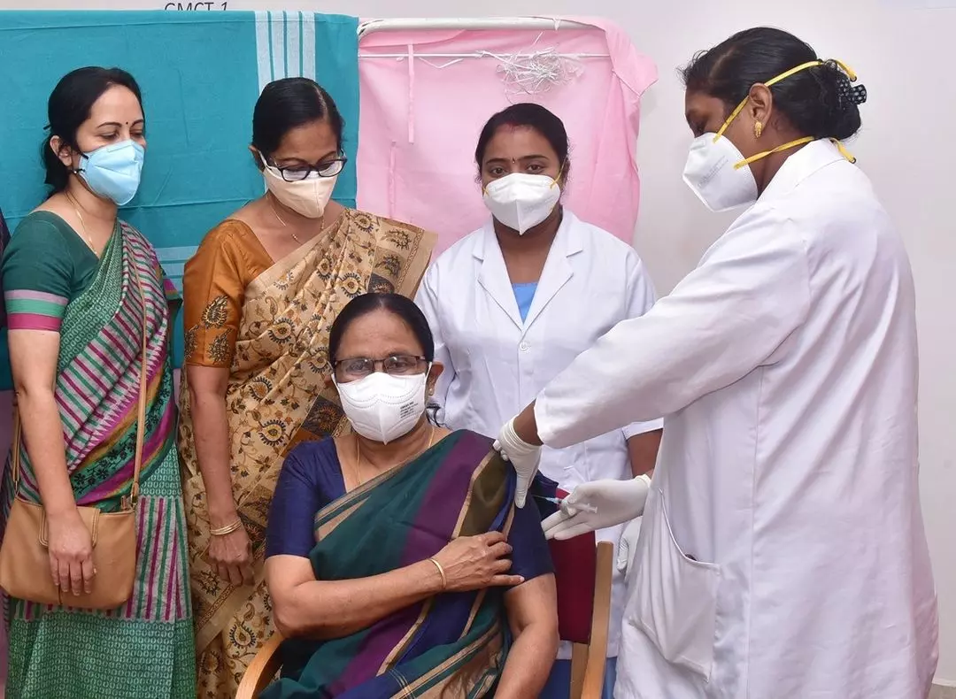 ''തിരുവനന്തപുരം മെഡിക്കല് കോളേജിലെ കോവിഡ്-19 വാക്സിനേഷന് കേന്ദ്രത്തില് നിന്നും കോവിഡ് വാക്സിന് സ്വീകരിച്ചു. ഇതുവരെ നാല് ലക്ഷത്തിലധികം പേര് വാക്സിനെടുത്തു കഴിഞ്ഞു. ആര്ക്കും തന്നെ ഗുരുതര പാര്ശ്വഫലങ്ങള് റിപ്പോര്ട്ട് ചെയ്തിട്ടില്ല. ആയിരത്തിലധികം സെന്ററുകള് വാക്സിനെടുക്കാന് വിവിധ ജില്ലകളില് തയ്യാറാക്കിയിട്ടുണ്ട്. ഇതുകൂടാതെ പരീക്ഷണാടിസ്ഥാനത്തില് തിരുവനന്തപുരത്ത് മാസ് വാക്സിനേഷന് കേന്ദ്രം സംഘടിപ്പിച്ചിരുന്നു.