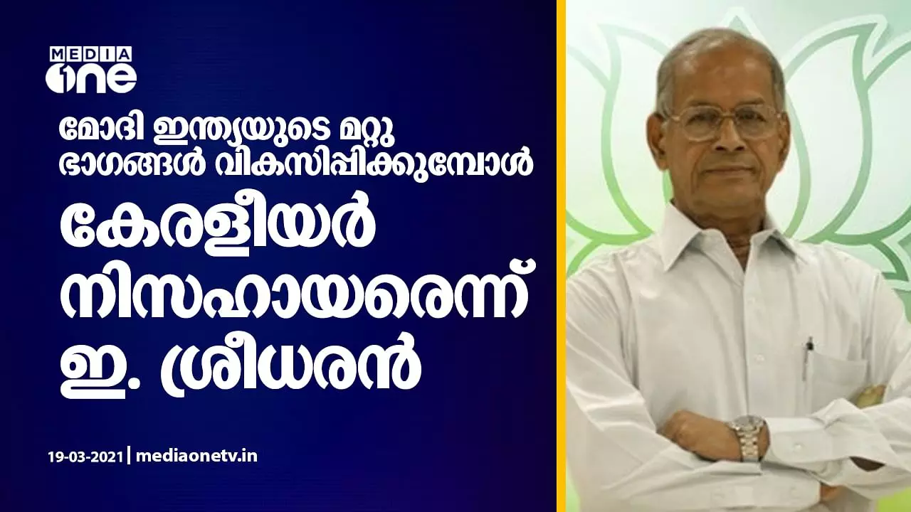 മോദി ഇന്ത്യയുടെ മറ്റു ഭാഗങ്ങൾ വികസിപ്പിക്കുമ്പോൾ കേരളീയർ നിസഹായരെന്ന് ബിജെപി സ്ഥാനാർഥി ഇ. ശ്രീധരൻ.