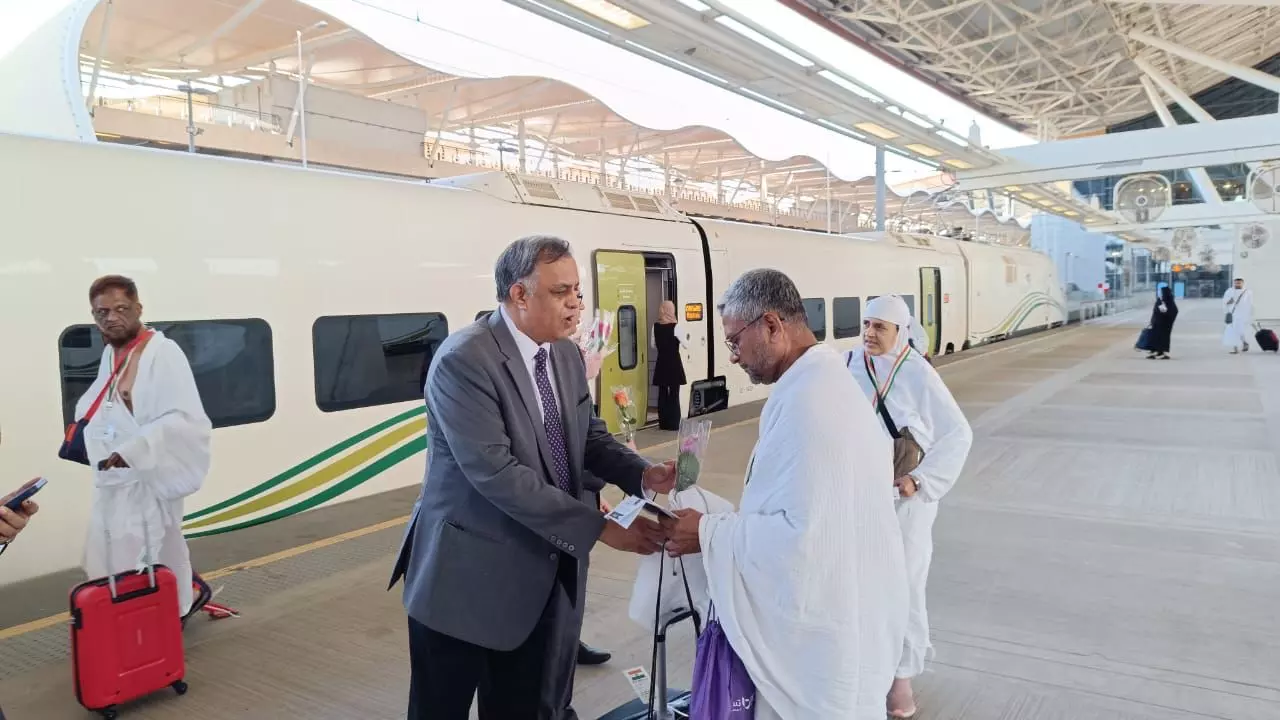 Traditionally all Hajis who arrive at Jeddah Airport , proceeds to Makkah by busses provided by the Saudi authorities. This year, however special arrangements have been made for some of the Indian Hajis, by the Consulate General of India Jeddah in association with concerned Saudi authorities, to ride the High Speed Harmain Train from Jeddah Airport to Makkah. "This is not only a first for Indian pilgrims but also an inaugural experience for Saudi authorities in transporting Hajis by train directly from Jeddah Airport to Makkah," commented Indian Ambassador to Saudi Arabia Dr. Suhel Ajaz Khan. About 32000 Hajis will be able to use this exclusive service. This will make their journey very comfortable and will reduce the travel time from Jeddah to Makkah by half. The highest speed of the Train is about 300 KM/ hour.
