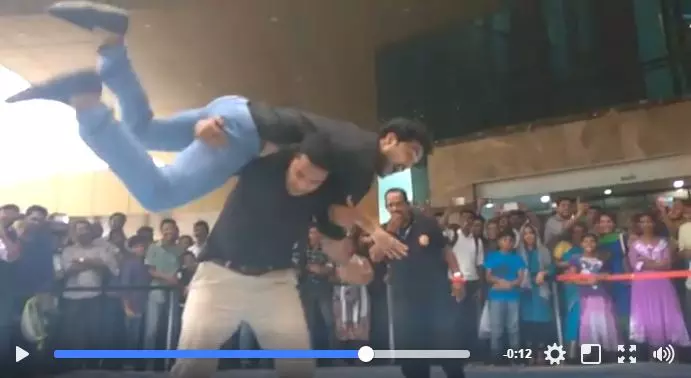 സംവിധായകന് ബാസില് ജോസഫ് നടന് ടോവിനോ തോമസിനെ മലര്ത്തിയടിച്ചു. ബാസിലിന്റെ പുതിയ ചിത്രമായ ഗോദയുടെ പ്രചാരണാര്ഥം നടന്ന പരിപാടിക്കിടെയാണ് സംവിധായകന് നായകനെ മലര്ത്തിയടിച്ചത്. ടോവിനോ ഫേസ്ബുക്കില് പങ്കുവെച്ച വീഡിയോ ബാസില് ഷെയര് ചെയ്തിട്ടുണ്ട്. 'ടോവിനോയെ മലര്ത്തി അടിച്ച എന്നെയേ നിങ്ങള്ക്കറിയൂ. പൊടിപാറുന്ന മത്സരത്തിനു ശേഷം പെടലി വെട്ടി കിടപ്പിലായ എന്നെ നിങ്ങള്ക്കറിയില്ല' എന്ന് കുറിച്ചാണ് ബാസില് വീഡിയോ ഷെയര് ചെയ്തിരിക്കുന്നത്.