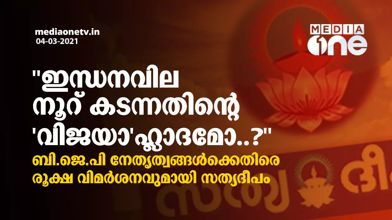 ''ഇന്ധനവില നൂറ് കടന്നതിന്റെ 'വിജയാ'ഹ്ലാദമോ..?'' ബി ജെ പി നേതൃത്വങ്ങള്ക്കെതിരെ രൂക്ഷ വിമര്ശനവുമായി സത്യദീപം