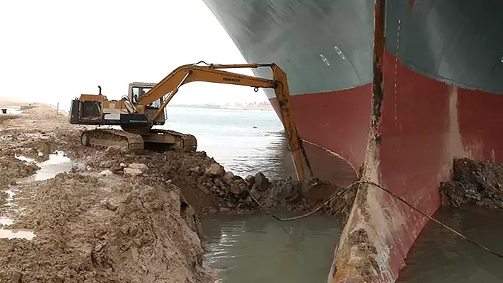 കനാലിൽ കുടുങ്ങിയ എവർ ഗിവൺ കപ്പലിന്റെ മുൻഭാഗത്തു നിന്ന് യന്ത്രങ്ങളുപയോഗിച്ച് മണ്ണ് മാറ്റിയതോടെയാണ് കപ്പലിനെ ചലിപ്പിക്കാനായത്