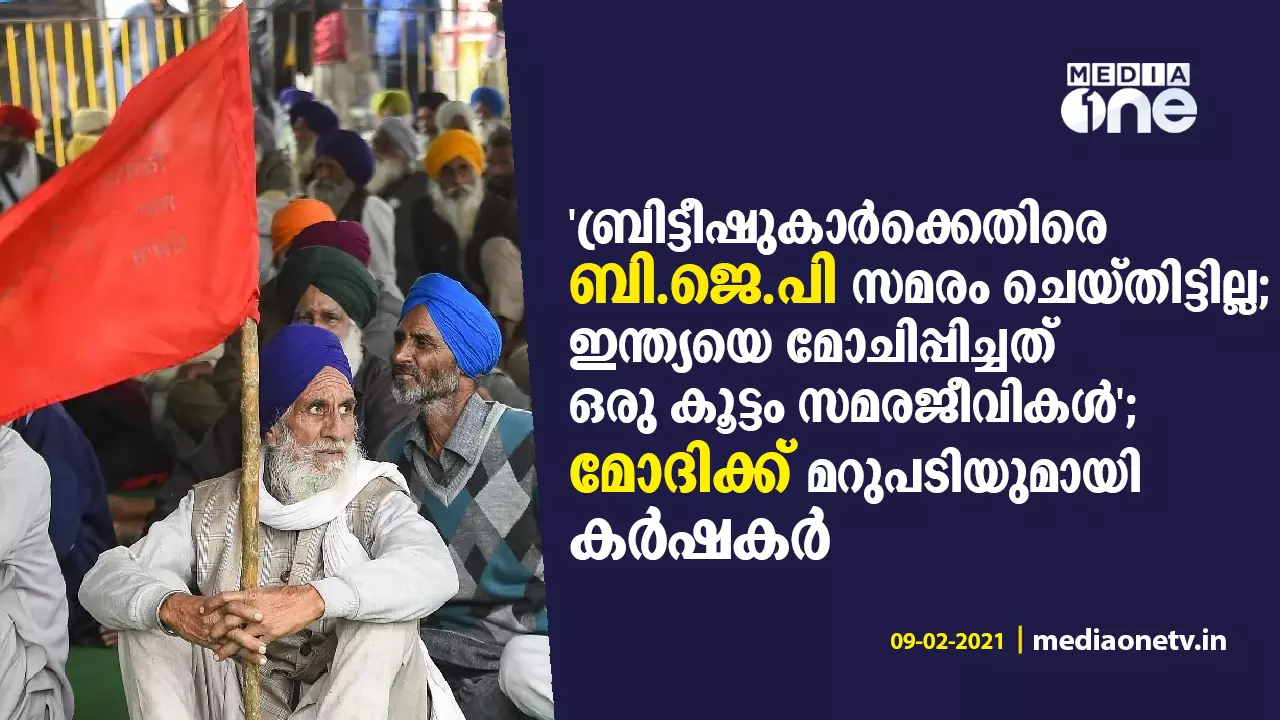 "ബ്രിട്ടീഷുകാര്ക്കെതിരെ ബി.ജെ.പി സമരം ചെയ്തിട്ടില്ല; ഇന്ത്യയെ മോചിപ്പിച്ചത് ഒരു കൂട്ടം സമരജീവികൾ"; മറുപടിയുമായി കർഷകർ
