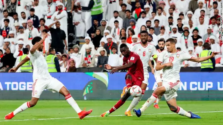 മറുപടി നല്കാനുള്ള ഓരോ ശ്രമവും ഖത്തര് ഗോള് കീപ്പര് അല്ശീബും പ്രതിരോധ നിരയും തകര്ത്തു. ഇടവേളക്ക് ശേഷം 80 മിനിറ്റില് ഹസന് അല് ഹൈദ്രോസിന്റെ വകയായിരുന്നു മൂന്നാമത്തെ പ്രഹരം. എക്സ്ട്രാ ടൈമില് ഹമീദ് ഇസ്മായില് നാലാം ഗോള് നേടി. ഇതിനിടെ ഖത്തർ താരത്തെ മുഖത്ത് ഇടിച്ചതിന് യു.എ.യുടെ ഇസ് മാഈൽ അഹ്മദ് ചുവപ്പുകാര്ഡ് കണ്ട് പുറത്തുപോയി. നാല് തവണ ചാമ്പ്യന് പട്ടം നേടിയ ജപ്പാനെയാണ് വെള്ളിയാഴ്ച അബൂദബി സായിദ് സ്പോര്ട്സ് സിറ്റിയില് ഖത്തറിന് നേരിടേണ്ടത്.
