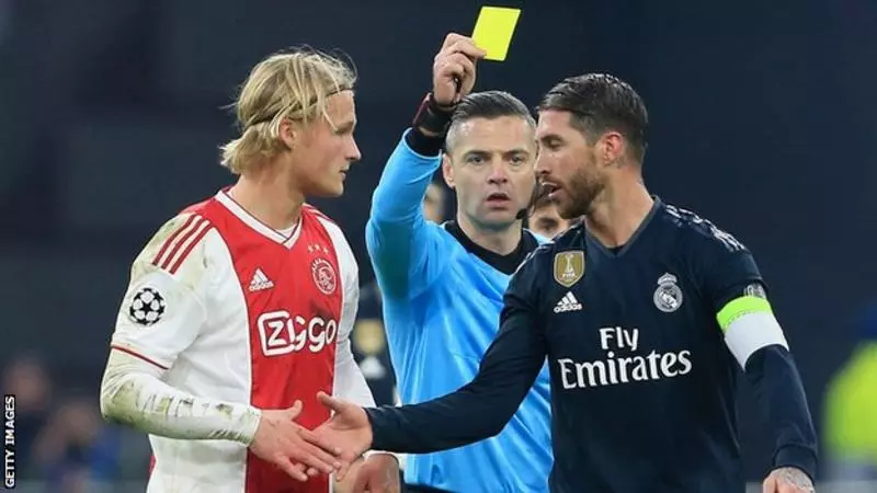 ചാമ്പ്യന്സ് ലീഗ് പ്രീക്വാര്ട്ടറില് മഞ്ഞക്കാര്ഡ് 'ചോദിച്ച് വാങ്ങിയ' റയല്മാഡ്രിഡ് താരം സെര്ജിയോ റാമോസിന് രണ്ട് മത്സരങ്ങളില് നിന്ന് യുവേഫ വിലക്കി. ചാമ്പ്യന്സ് ലീഗില് അയാക്സിനെതിരായ മത്സരത്തിലാണ് റയല് നായകന്റെ കരുതിക്കൂട്ടിയുള്ള ഇടപെടല്. മത്സരത്തിന്റെ 89ാം മിനുറ്റിലായിരുന്നു സംഭവം. അയാക്സ് താരം കാസ്പര് ഡോള്ബര്ഗിനെയാണ് താരം ഫൗള് ചെയ്തത്.