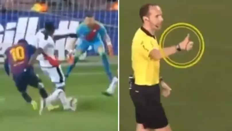 മത്സരത്തില് ആദ്യം ഗോള് നേടിയത് റയോ വല്ലക്കാനോയായിരുന്നു. വൈകാതെ ബാഴ്സ പിക്വെയുടെ ഹെഡറിലൂടെ സമനില നേടുകയും ചെയ്തു. ആദ്യ പകുതി തീരും മുമ്പെയായിരുന്നു മെസിയുടെ നീക്കം റയോ വല്ലക്കാനോ പ്രതിരോധത്തെ അങ്കലാപ്പിലാക്കിയത്. പെനല്റ്റി ബോക്സില് അഞ്ച് താരങ്ങള്ക്കിടയിലൂടെയാണ് മെസി ഗോളിനുള്ള പഴുത് കണ്ടെത്താന് ശ്രമിച്ചത്. ഇതിനിടെ റയോ പ്രതിരോധക്കാരന്റെ കാലില് തട്ടി ബാലന്സ് തെറ്റി മെസി വീഴുകയും ചെയ്തു.