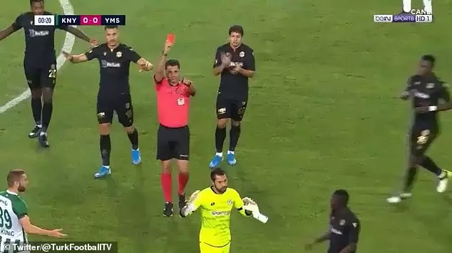 കളി തുടങ്ങി 13 ാം സെക്കന്റില് തന്നെ ചുവപ്പ് കാര്ഡ് വാങ്ങിയതിന്റെ നാണക്കേടിലാണ് തുര്ക്കിയിലെ ഒരു ഗോള്കീപ്പര്. നാണക്കേടിന്റെ ഈ റെക്കോര്ഡ് സ്വന്തമാക്കിയിരിക്കുന്നത് തുര്ക്കി ലീഗിലെ കോന്യസ്പോറിന്റെ ഗോള് കീപ്പര് സെര്ക്കന് കിരിന്റിലിയാണ്.