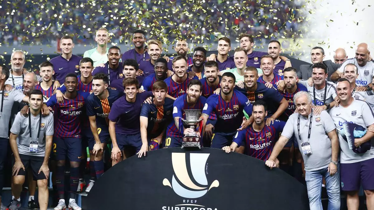 സ്പാനിഷ് സൂപ്പര് കപ്പില് കഴിഞ്ഞ വര്ഷ ജേതാക്കളായ ബാഴ്സലോണ ടീം കപ്പുമായി