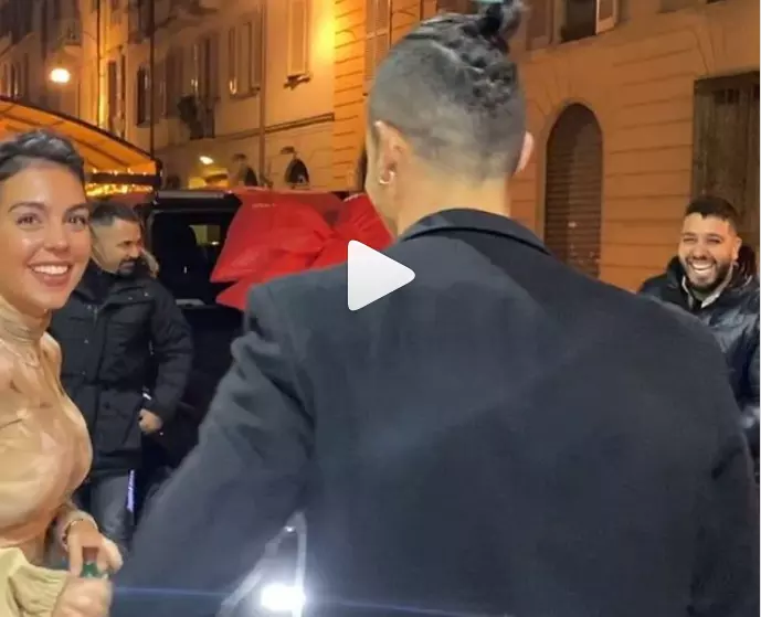കാമുകിയും ജീവിതപങ്കാളിയുമായ ജോര്ജ്ജിന റോഡ്രിഗസിനൊപ്പം നടന്നു പോവുകയായിരുന്നു ക്രിസ്റ്റിയാനോ. പെട്ടെന്ന് തെരുവിന്റെ ഒരു ഭാഗത്തു നിന്നും ചെറു ആള്കൂട്ടം ആരവത്തോടെ പ്രത്യക്ഷപ്പെട്ടു. അത് അടുത്ത സുഹൃത്തുക്കളും ബന്ധുക്കളുമാണെന്ന് തിരിച്ചറിഞ്ഞതോടെ ക്രിസ്റ്റിയാനോയുടെ അമ്പരപ്പ് സന്തോഷത്തിന് വഴിമാറി.