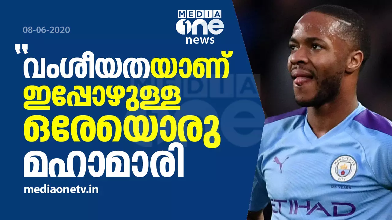ജോര്ജ്ജ് ഫ്ളോയിഡിന്റെ കൊലപാതകത്തെ തുടര്ന്ന് വംശീയതക്കെതിരെ ബ്രിട്ടനില് നടക്കുന്ന പ്രതിഷേധങ്ങള്ക്ക് പിന്തുണ പ്രഖ്യാപിച്ച് മാഞ്ചസ്റ്റര് സിറ്റി താരം റഹീം സ്റ്റെര്ലിംഗ്. 'ഇപ്പോഴുള്ള ഒരേയൊരു രോഗം വംശീയതയാണ്, അതിനെതിരെയാണ് നമ്മുടെ പോരാട്ടം' എന്നാണ് സ്റ്റെര്ലിംഗ് ബി.ബി.സിയുമായുള്ള അഭിമുഖത്തില് പറഞ്ഞത്.