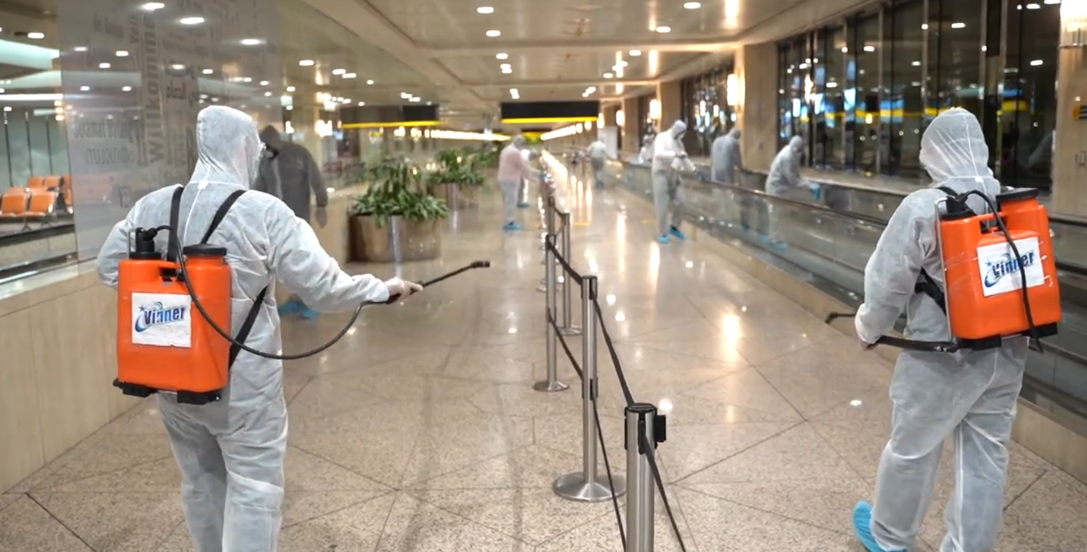 റിയാദ് വിമാനത്താവളത്തില് യാത്രക്കാര് സഞ്ചരിക്കുന്ന വഴികളെല്ലാം അണുമുക്തമാക്കുന്നു