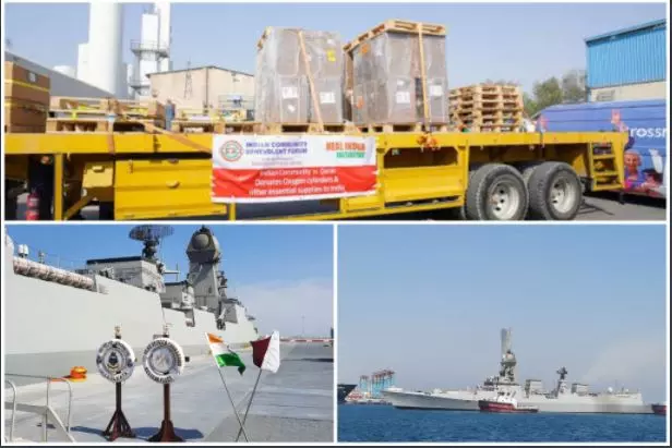 ഖത്തറിലെ ഇന്ത്യന് സമൂഹം ശേഖരിച്ച മെഡിക്കല് സഹായവസ്തുക്കളുമായി 'INS കൊല്ക്കത്ത' പുറപ്പെട്ടു