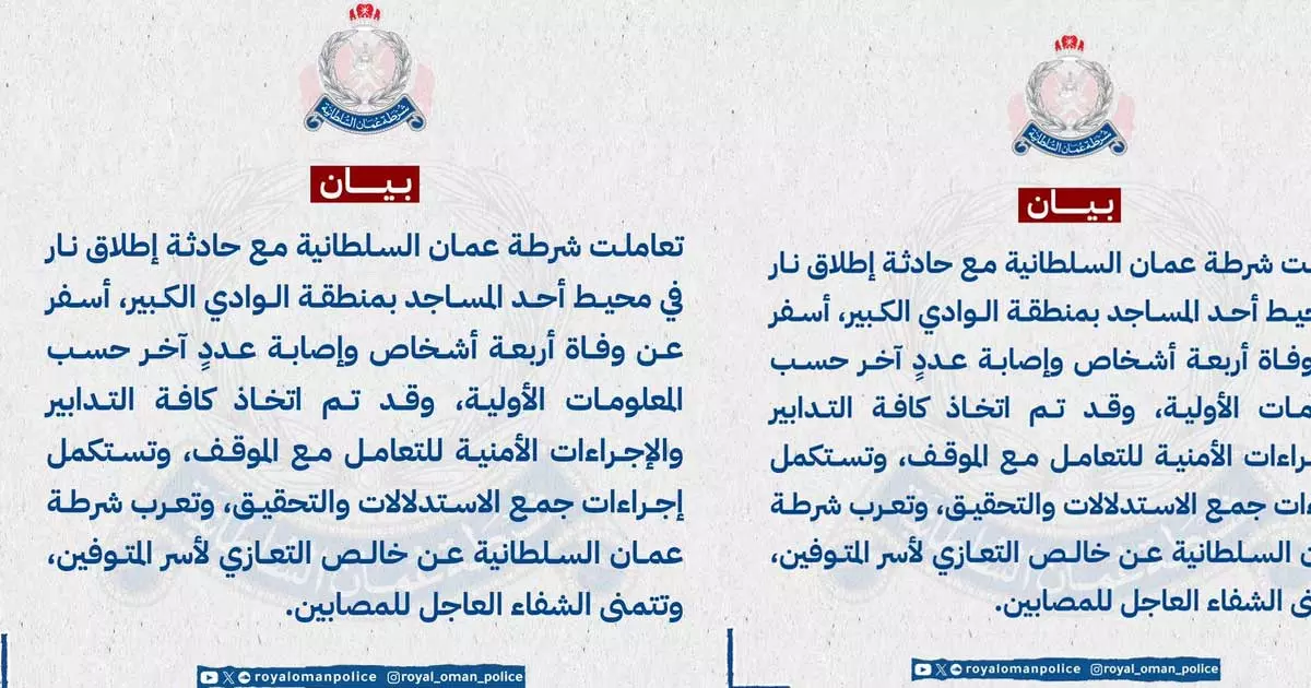 ഒമാനിലെ വാദി കബീറിൽ വെടിവെയ്പ്പ്: നാല് മരണം