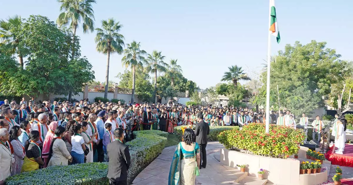 എംബസി അങ്കണത്തിൽ ആഘോഷത്തിൽ ഭാഗമായി ഇന്ത്യൻ സ്ഥാനപതി അമിത് നാരംഗ് ദേശീയ പതാകയുയർത്തി