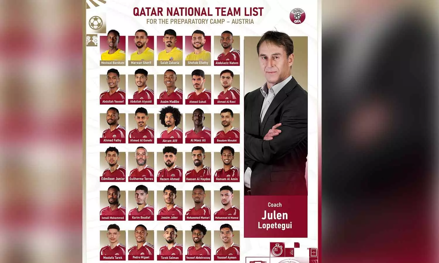 ഓസ്ട്രിയയിലെ 17 ദിവസത്തെ പരിശീലന ക്യാമ്പിനൊപ്പം രണ്ട് സൗഹൃദ മത്സരങ്ങളിലും ഖത്തർ കളിക്കും. പരിശീലകൻ യുലൻ ലോപെറ്റഗ്വി 30 അംഗ ടീമിനെ പ്രഖ്യാപിച്ചു. മുൻ ക്യാപ്റ്റൻ ഹസൻ അൽ ഹൈദോസിനെ ടീമിൽ ഉൾപ്പെടുത്തിയിട്ടുണ്ട് എന്നത് ശ്രദ്ധേയമാണ്.