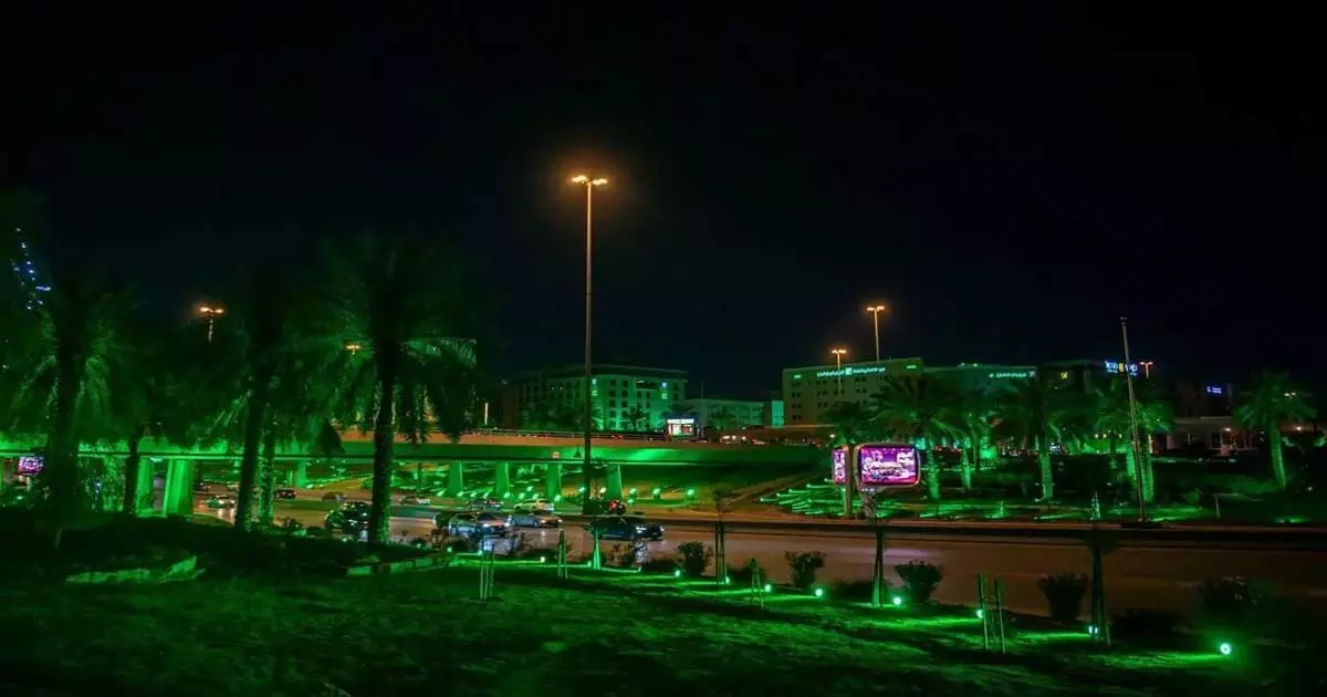 സൗദി ഗ്രീൻ ഇനിഷ്യേറ്റീവ് ദിനം; പച്ചവിരിച്ച് റിയാദ് നഗരത്തിലെ റോഡുകളും കെട്ടിടങ്ങളും