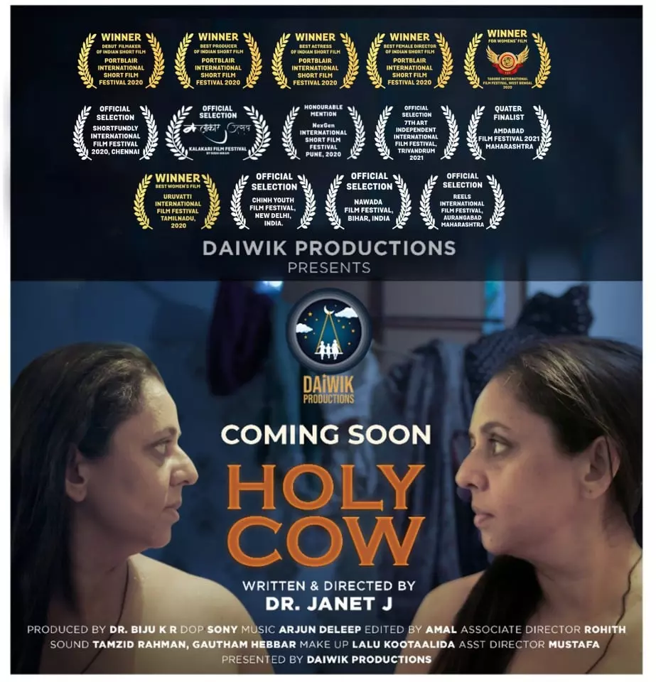 പ്രശസ്ത ചലച്ചിത്ര പ്രവര്ത്തകയും സോഷ്യല് ആക്റ്റിവിസ്റ്റുമായ വനിതാ സംവിധായിക ഡോ.ജാനറ്റ് ജെ കഥയും തിരക്കഥയുമൊരുക്കി സംവിധാനം ചെയ്യുന്ന ഹ്രസ്വചിത്രം 'ഹോളി കൗ' 5 ന് റിലീസ് ചെയ്യും. ദൈവിക് പ്രൊഡക്ഷന്സിന്റെ ബാനറില് ഡോ. ബിജു കെ.ആര് ആണ് ഹോളി കൗവിന്റെ നിര്മ്മാണം. പ്രമേയത്തിലെ പുതുമയും അവതരണത്തിലെ വ്യത്യസ്തതയും കൊണ്ട് ഹോളി കൗ 16 ദേശീയ-അന്തർ ദേശീയ പുരസ്ക്കാരങ്ങൾ ഇതിനോടകം നേടി കഴിഞ്ഞു. ചിത്രത്തിലെ കേന്ദ്രകഥാപാത്രത്തെ അവതരിപ്പിക്കുന്നതും ഡോ. ജാനറ്റാണ്.