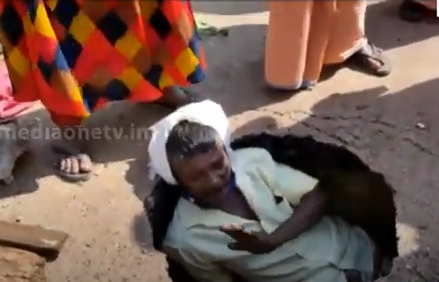 റോഡില് കൂറ്റന് ഗര്ത്തം; കുഴിയിലിറങ്ങി പ്രതിഷേധിച്ച് നാട്ടുകാര്