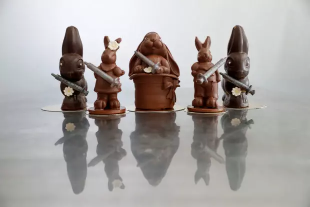 കയ്യില് പ്രതിരോധ വാക്സിന്റെ സിറിഞ്ചുമായി നില്ക്കുന്ന രൂപത്തിലാണ് ഈ ചോക്ലേറ്റുകള് തയ്യാറാക്കിയിരിയ്ക്കുന്നത്. പ്രശസ്ത ഹംഗേറിയന് ഷെഫായ ലാസ്ലോ റിമോസിയാണ് മുയല് ചോക്ലേറ്റുകളുടെ സൃഷ്ടാവ്. ഇറ്റാലിയന് ചോക്ലേറ്റ് ഉപയോഗിച്ചാണ് മുയലുകളുടെ രൂപം നിര്മ്മിച്ചിരിക്കുന്നത്. ഇറ്റാലിയന് മില്ക്കും ഡാല്ക്ക് ചോക്ലേറ്റും കൊണ്ടാണ് സിറിഞ്ച് ഉണ്ടാക്കിയിരിക്കുന്നത്. ബുഡാപെസ്റ്റിൽ നിന്ന് 70 കിലോമീറ്റർ തെക്ക്, ലജോസ്മിസ്സിലുള്ള തന്റെ ചെറിയ ഷോപ്പിലാണ് റിമോസി ചോക്ലേറ്റുകള് ഉണ്ടാക്കിയത്. ഈസ്റ്ററിന്റെ പശ്ചാത്തലത്തില് കുട്ടികള്ക്കായി വാക്സിന് ഇല്ലാത്ത മുയല് ചോക്ലേറ്റുകള് നിര്മ്മിക്കുമെന്ന് റിമോസി പറഞ്ഞു.