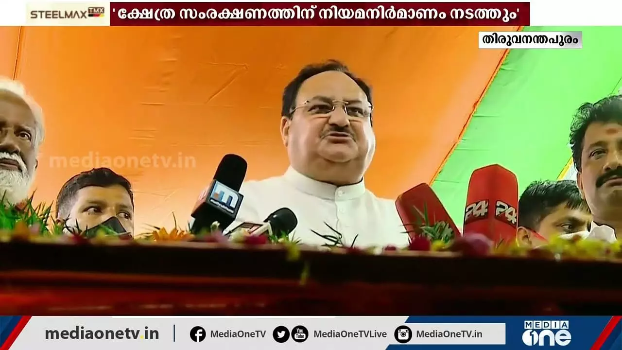 ക്ഷേത്ര സംരക്ഷണത്തിന് നിയമനിര്മാണം നടത്തും: നേമത്ത് റോഡ് ഷോയുമായി ജെ.പി നദ്ദ