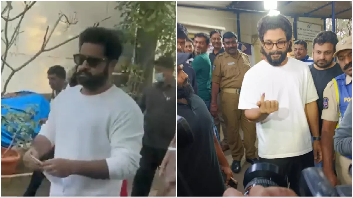 വോട്ട് ചെയ്യാനെത്തിയ ജൂനിയര് എന്ടിആര്/ വോട്ട് ചെയ്ത ശേഷം അല്ലു അര്ജുന്