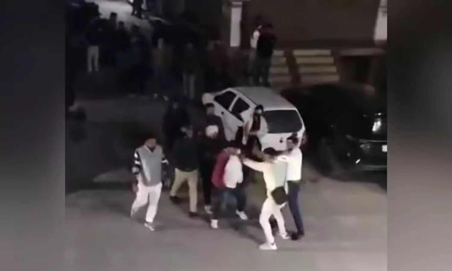 യുവാക്കളിലൊരാൾ ബെൽറ്റ് ഊരി രണ്ടാമനെ അടിക്കുകയും തുടർന്ന് പരസ്പരം ഇടിക്കുകയും ചവിട്ടുകയും ചെയ്തു. തമ്മിൽത്തല്ല് കണ്ട് ചിലർ വാഹനം നിർത്തുകയും പ്രദേശത്തുണ്ടായിരുന്ന ആളുകൾ തടിച്ചുകൂടുകയും ചെയ്തു. തർക്കം നിയന്ത്രിക്കാനും യുവാക്കളെ പിരിച്ചുവിടാനും ഇവർ ശ്രമിച്ചെങ്കിലും ഫലമുണ്ടായില്ല.